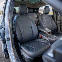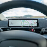 Uvnitř na vás čeká moderna a rovnou říkám, že příznivci citlivě zakomponovaných displejů do palubní desky by snad na fotky ani neměli koukat. Čeká vás tu nízký, ale dlouhý displej před řidičem, který je většinu času při jízdě z půlky naprosto nevyužitý a nemá možnost jakékoli konfigurace. A pak hlavně obrovská středová obrazovka, v níž je zabudované i kolečko ovládání hlasitosti, které je nepřehlédnutelnou dominantou celého interiéru. Nápad s kolečkem i provedení se mi líbí moc, ale nakonec jsem stejně hlasitost ovládal na volantu. Spodní část displeje zobrazuje ovládání klimatizace, nad ní je část s aktivními panely naposledy spuštěných funkcí a pak největší prostor pro právě spuštěnou aplikaci. Kvalita zobrazení, jas, jemnost displeje i rychlost ovládání jsou bez připomínek, ale dokonce i mně, kterému vystouplé displeje nevadí, tohle přijde trochu moc. Navíc mám vyzkoušeno, že vysocí řidiči (195 cm a výš) se mohou kolenem dotýkat spodního rohu obrazovky. Jsem zvědavý, kde až se ta móda obřích displejů zastaví.