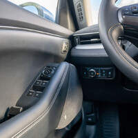 Konečně mám taky čas i světlo si pořádně prohlédnout interiér, do kterého se dostanete přes elektrické odskoky dveří po stisknutí kulatého tlačítka na sloupku. Vpředu ještě pomáhají drobná madla na hraně oken, vzadu ale chybějí. Překvapivě mi to nakonec vůbec nevadilo, ale jak se řeší přístup přes zadní dveře, když napadne sníh a třeba přes noc přimrzne? Vždyť tam není žádné madlo, za které by se dalo zatáhnout…