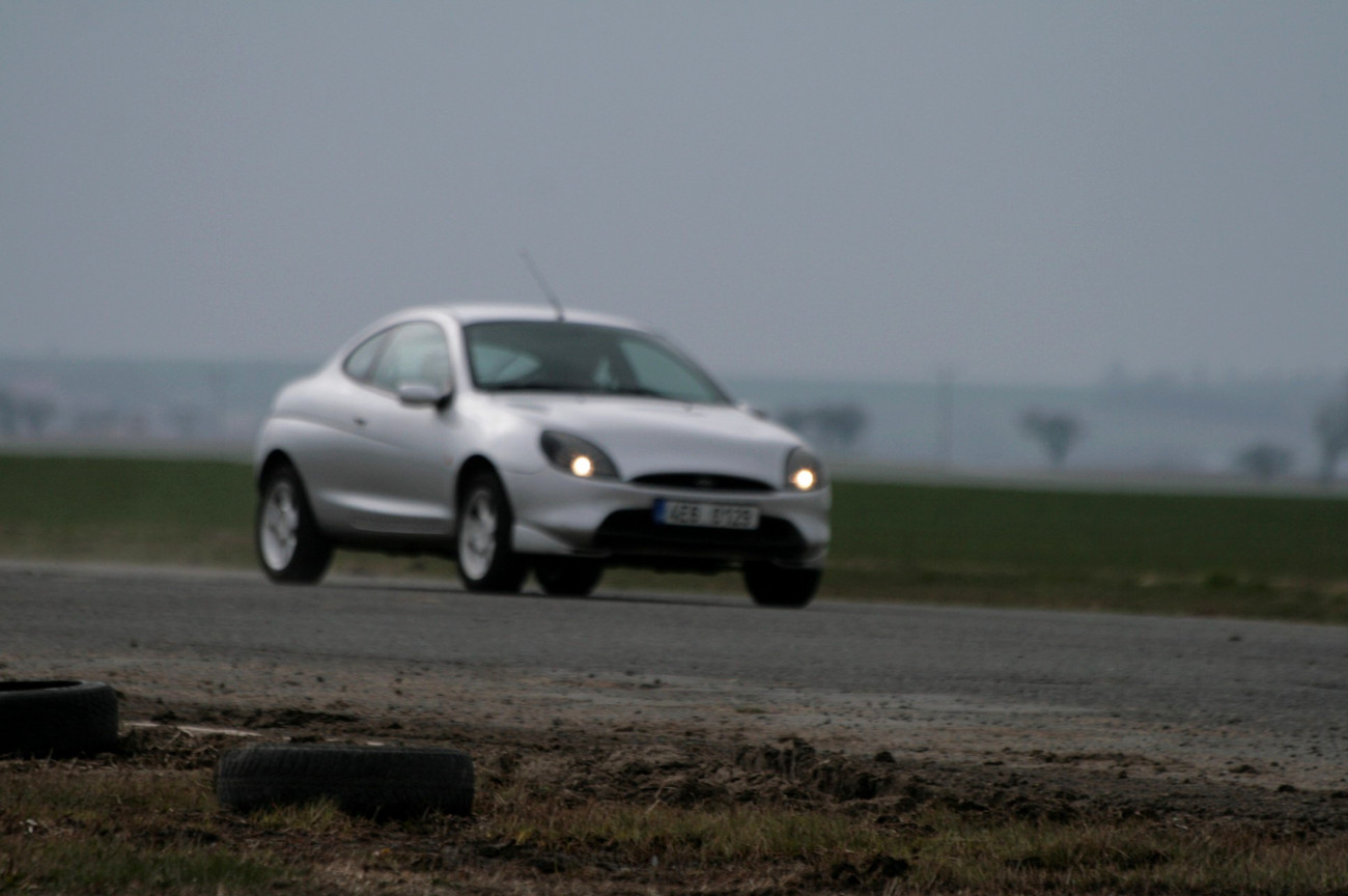 Při cestě z Pardubic (zdravíme redakci Autíčkáře) do Brandýsa n. L. jsem na konci cesty vystoupil značně roztřesený. Kdybych náhle utrpěl amnézii přísahal bych, že jsem se snad zúčastnil značně nevázané vězeňské párty. Ony ani moje uši na tom nebyly o nic lépe. Možná jsem jen zhýčkaný z jedničkové Laguny ale být z PR Fordu tak jízdní pohodlí hodnotím jako "výrazně orientované na zážitky za volantem". Další problém je osvětlení. Potkávací světla jsou tak slabá, že jsem si nedávno při nočním městském provozu ani nevšiml že nesvítím. Dálková světla jsou naštěstí naopak více než dostatečně výkonná. Nepotěší ani posaz za volantem tak nízký, že řidiče vše co není jiná Puma oslňuje pomalu i denním svícením. Výhled šikmo vzad není vzhledem k masivnímu C sloupku téměř žádný a s kulatou kaorserií se hůře parkuje couváním. No a pokud si na auto nepřipnete 14ti palcová kola s pneumatikami o šířce 185 a profilovým číslem 45, tak se s lehoučkým vozem k samotnému asfaltu přes sníh téměř nedostanete. Auto sice ve výsledku vypadá jako na kolečkách od piána ale aspoň to drží na silnici.