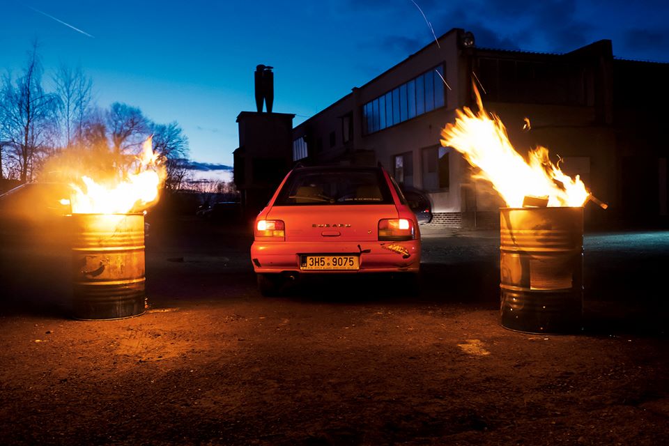Mikulášské Kafe&Káry Praha: Hromada kár a hořící sudy