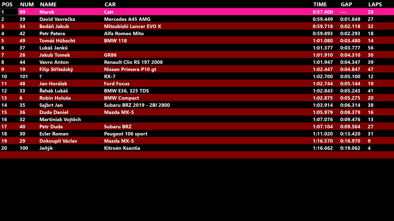 Odpoledne, včetně obou šikan (osychající trať). Fotograf: