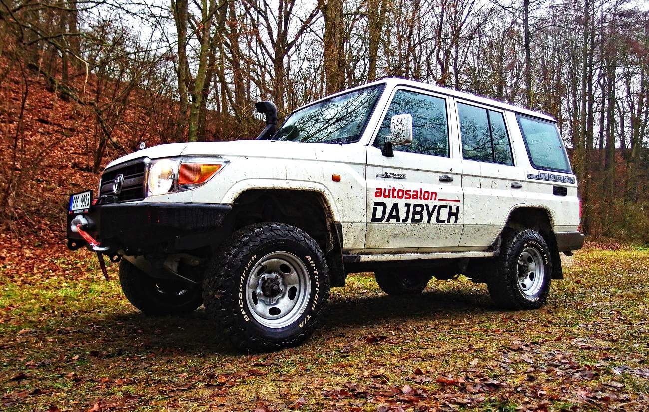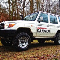 Ale teď už pryč z civilizace. Jen pár minut od showroomu má tým autosalonu Dajbych k dispozici terénní areál, kde se testují hvězdy dnešního programu. Na místo nás odváží Land Cruiser 76, verze Wagon. Je to vlastně “civilní” varianta hraček, které si budu moci vyzkoušet za chvíli, a zároveň takový stroj času na pochodu. Vyrábí se totiž už 30 let a vypadá pořád stejně, nijak zásadně se nezměnil ani uvnitř. Pochopitelně to nefunguje tak, že byste přišli do běžného dealerství Toyoty a odjeli fungl novou sedmdesátkou. Pokud si nechcete vůz dovézt po vlastní ose třeba z Austrálie nebo Spojených Arabských Emirátů, jste odkázáni na inzerci – nebo na Dajbycha. Tady si můžete vybrat z několika verzí karoserie, k tomu dostanete atmosférický benzinový motor splňující normu Euro6, a ještě budete mít volant na správné straně. Musím přiznat, že můj wishlist se povážlivě otřásl v základech…