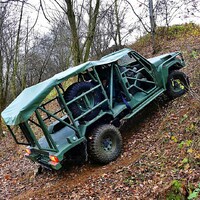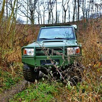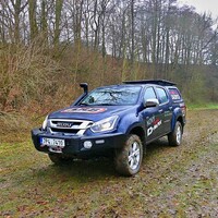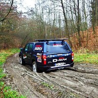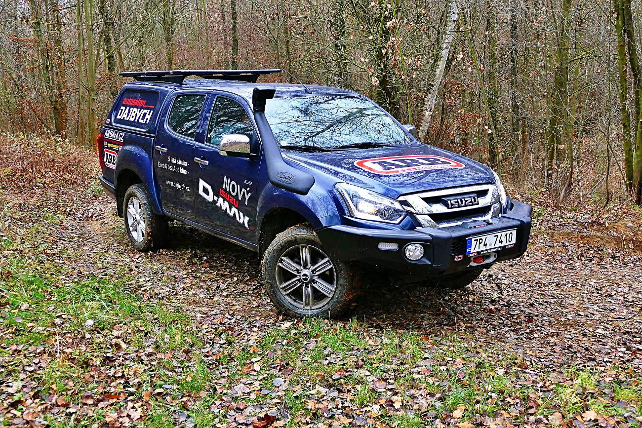 Další přichází na řadu Isuzu D-Max, vylepšený od kol až po střechu expedičními doplňky a terénními nezbytnostmi, jako jsou kompresorové uzávěrky diferenciálů, pevnostní nárazníky či naviják. Je to tedy trochu jiné auto než perleťový exemplář, který jsme měli na test před dvěma lety. Ve srovnání s LRPV protančil testovací kolečko s lehkostí baletky, na spojku už si dávám pozor, na hlavu mi neprší, takže můžu i prohodit pár slov s Martinem Bothem, který sedí vedle mě. Samozřejmě mě zajímá, jak složitý proces představuje dostat auto s ocelovými traverzami vpředu i vzadu do legálního provozu. Dobrá zpráva je, že inkriminovaný D-Max je kompletně homologován pro jízdu na veřejných silnicích. Kromě Isuzu si takhle můžu nechat upravit i Hilux nebo Wrangler, u Dajbycha bude všechno zařízeno takříkajíc na klíč. Co je horší, levné to rozhodně nebude a jedno odpoledne vám na to taky nestačí. Rovnou zapomeňte na to, že si necháte instalovat vlastní díly nebo “jen” nechat schválit vlastní úpravu. Nedá se nic dělat, Forestere, budeš si muset vystačit s tím, co na tebe namontovali ve fabrice.