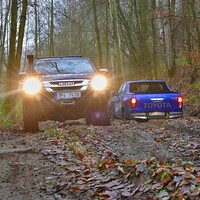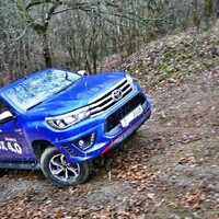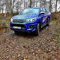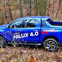 Po hardcorovém LRPV a o něco civilnějším D-Maxu usedám do Toyoty Hilux a rázem se ocitám v úplně jiném světě. Kožené sedačky, automat a tak dokonale odhlučněná kabina, že chvílemi pochybuju o přítomnosti motoru. Ale je tam, a ne jen tak ledajaký, koneckonců jsme na předváděčce specialit. V oficiální distribuci koupíte Hilux jen s dieselovým čtyřválcem o objemu 2,4 l, ovšem Dajbych vám dodá v benzinové verzi s šesti válci, čtyřmi litry objemu a výkonem 232 koní. To je o dost veselejší. Zvenčí je skutečně slyšet, že pod kapotou duní něco majestátního, uvnitř však zůstává ticho jako v hrobě. Vážně, to auto jede jako elektromobil, a to bez ohledu na úhel stoupání. Proč tuhle verzi v Evropě běžně nekoupíte? Na vině jsou samozřejmě emisní normy. Aby auto plnilo Euro6, musí si ho vzít do parády partnerská společnost v Německu a provést na něm úpravy výfukového potrubí a řídící jednotky. Jako běžný prodejní standard je tento postup pro výrobce nejspíš značně neekonomický, a kdo chce mít ve svém pick-upu chlapácký šestiválec, musí holt podstoupit cestu komplikovanější a finančně náročnější. Každopádně je milé vědět, že to jde.