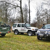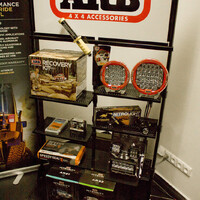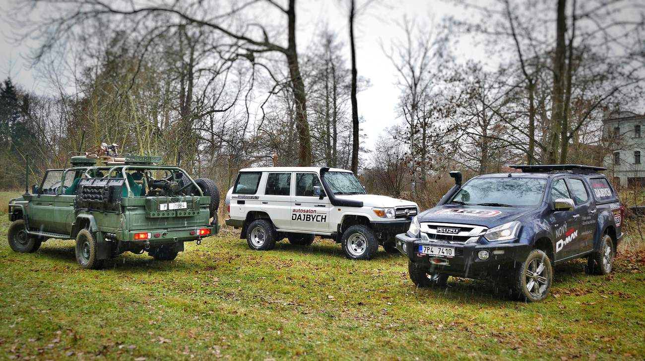 Teoretická část akce je velmi krátká a skládá se vlastně jen z představení klíčových osobností, které mají na starosti speciality v místní nabídce. První si bere slovo přímo Petr Dajbych, následuje Jan Valenta, ten nám za chvíli předvede Hilux V6, Václav Buchbauer, vedoucí oddělení speciálních projektů, rozuměj vojenských Gepardů, a Martin Both, odborník přes expediční offroadové vybavení. Dokud jsme čistí, nezmoklí a nezablácení, jdeme se podívat do showroomu, kde si právě takové věci můžete pořídit. Pevnostní nárazníky, reflektory, kompresorové lednice a zahrádky ARB, navijáky Warn, podvozkové komponenty Old Man Emu… Pokud máte rádi offroad, budete si tu připadat jako děcko u vánočního stromku. Podle toho, s jakým nadšením nám Martin Both všemožné vehementy představuje, se tyhle hračky zřejmě jen tak neokoukají. Nejnovějším přírůstkem je Jack, hydraulický hever od ARB. Vypadá jako plotová tyčka, ale s jeho pomocí vyprostí dvoutunové auto z nesnází i malé dítě. Některé z vychytávek uvidíme už za chvíli v akci – dalším bodem programu jsou totiž – konečně – jízdy!