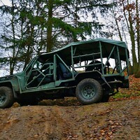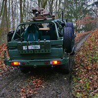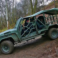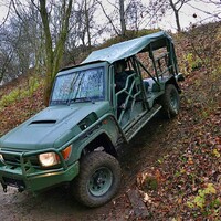 Jeho jadrný zvuk si při absenci oken člověk vychutnává všemi póry těla, stejně jako rozmary počasí a bahno cákající až nad hlavu. Sápu se za volant, vedle mě sedí Tomáš Petrů, a jestli právě pocítil strach o život, nedal to znát ani mrknutím oka. Auto se dává do pohybu s řevem raněného buvola a s podivuhodnou lehkostí – aha, prozatím není instalováno pancéřování a taky radiotechnika musela odcestovat někam na testy. Momentálně je to vlastně lehký pickup, slabé čtyři tuny váhy. Pod prudkým kopcem dostávám pokyn zařadit redukci. Diodka bliká, popojíždím pomalu tam a zpátky, ovšem Gepard si nakonec prosadí svou a do svahu musíme vyrazit bez redukce. Ne že by to byl nějaký problém… Cesta ze svahu se naopak ukázala obtížnější. Ne kvůli schopnostem vozu, ale kvůli nespolehlivému elementu mezi sedačkou a volantem, který hamtnul na spojku a uvedl sunoucí se kolos v nečekanou rychlost. V tu chvíli mě napadá, že jsem si v terénu na ten automat zvykla až moc. Zbytek cesty už je bez potíží, a protože narozdíl od Kajmanu má Gepard pohon 4x4 pouze přiřaditelný, dopřeju si na mokré louce i rozmarný drift.