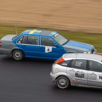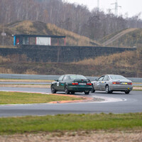 Den D mínus jedna. Vyrážíme s Primerou napěchovanou dvěmi sadami kol, kanystry (nechceme riskovat čekání na jediný tankovací stojan na okruhu), nářadím, helmami a už ani nevím čím ještě. Z Brna jede Franta Miatou, veze plynový Robur, abychom v boxech nezmrzli (stejně jsme zmrzli) a válečné nálepky na auto. Radek vyráží z Prahy s heverem, vercajkem a velice zachovalou Primerou GT ve stejné myslivecké zeleni, jako náš závodní speciál – neřekli jsme mu to, ale když to rozbijem, budeme kanibalizovat na jeho autě. Závodní Primera zvládá D1 jako nic. Je neuvěřitelné, jak příjemný ten vehikl za 15 tisíc umí být. Vypadá to, že zadní brzda povolila a je OK – tedy ideální příležitost zavolat při čurpauze Radkovi a trochu ho vytrolit, že nám to shořelo, máme v kotouči vydřené rýhy a třmen na padrť. Krásné věci na nás ten jemný hoch křičel poté, co jsme vyklopili pravdu. :-) Cestou potkáváme několik soupeřů – všechny na plaťáku. U Některých je vidět, že to berou vážněji, než jsme čekali. Most nás přivítá inverzí a nezaměnitelnými krásami Severních Čech. Po 10 minutách srávených v tom městě udušeným inverzí se chceme zabít. Tak se raději jdeme vyložit do boxů, technicky přejmout, přezout auto na rally slicky a zahořet brzdy. Obdivujeme speciál Ředitelství Gumbalkanu, 728i E38 změněná v Messerschmitt vypadá impozantně. Vedlejší boxy okupují kluci s Mini a vrchařský mistr Surowka s Escortem, napravo od nás jsou internetově profláklé Alfy – GT a 156 – s překrmenými diesely. Zjišťujeme, že budeme soupeřit se dvěma Focusy ST170, mohutně nakoňovaným Leonem 1.8 20VT, splašeným Saabem 9-3, který vypadá, že je postavený z gruntu a majitelé pyšně odhadují výkon na 240 koní, nebo úchvatně upraveným Renaultem Safrane s vyházeným interiérem a mocně znějícím šestiválcem PRV – pro mě společně s Messerschmittem nejkrásnějším speciálem víkendu. Startovní pole je pestré – obsahuje vyloženě netknuté plečky jako rezavou a očividně zanedbanou Toyotu Coronu nebo zcela sériovou Xantii, až po zmíněné značně upravené vozy. Mezi účastníky jsou zkušení piloti z velkých závodů, nějací novináři a fotografové a také spousta těch, kteří si to jdou prostě užít a na okruhu nikdy nebyli. Napětí stoupá. Chceme vyhrát. Jagy nejvíc. Také z toho důvodu jsme se domluvili na pouhá tři střídání jezdců po 90 minutách. Bude to mega! Jdem na pivo a pak spát do hotelu Širák, jehož okolí vypadá jako z knížky Stephena Kinga. Malebné…