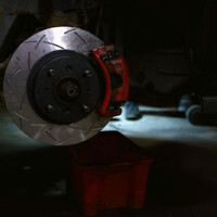 Domluvili jsme se na setkání v dílně Jedeto na devátou ráno. Asi 40 minut po smluveném čase se ke garáži doploužila i Prymula. Od posledního PlechCupu před rokem a půl prý nejela. No, dobrý… Startovat musela přes kabely, na první pohled ale vypadala mnohem líp, než by se na auto za 15 tisíc slušelo. Jen jakési otvory v přední části prahů, pravděpodobně nasavače pro chlazení posádky či zadních brzd, prozrazovaly cosi o důvodech nízké ceny. Prymula taky uměla hrát oslíčku otřes se – člověk ji kamarádsky poplácal a ona začla laškovně trousit po okolí fragmenty svých vnitřních blatníků. Nádhera. Jenže ještě větší nádhera byly přední kotouče z Hondy Prelude a brzdové destičky Hawk, které čekaly připravené v krabici. Bohužel s tím moc nesouhlasily adaptéry brzdových třmenů (pro změnu z 200SX S13), ale po domluvě bruskou si řekly, že cizí kotouče teda nějak adoptujou… Byla to dokonalá ukázka inženýrské praxe a tolerance na tisícinu milimetru. Vzadu jsme přistoupili krom destiček a kotoučů také k výměně kompletních třmenů, neb stávající byly jen smutným kusem rezavého kovu se zpuchřelým prasetem. Zbrusu nové… ehm… třmeny vypadaly na první pohled dosti podobně, jejich funkčnost však prý měla být lepší (Výše zmíněné vysoké inženýrství v praxi: lanko ruční brzdy natahovali ve třech, to samé, které jsem u druhého třmenu nandal sám :D – pozn. Franta). Příprava vozu jest činností edukativní. Věta: “Který debil nechal ty hadičky volně odkapávat? Vždyť se nám zavzdušní ABS a jsme v prdeli…” naznačovala, že opravárenský postup, který jsme s Frantou u výměny třmenů zvolili, nepatřil mezi nejvhodnější. (Já ti dám povyšovat se za brzdové lanko, smrade :D – Pozn.Vavris)