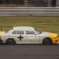 V: Ráno je hektické. Jednak jsme se nikdo pořádně nepodívali na harmonogram, takže fakt, že v boxech máme být nastoupení už v 7:45, zjišťujeme až v 7:30 s hubou plnou vaječiny. Druhak Franta večer odněkud dotáhnul nějaké podivné „ejly“ po jejichž večerní konzumaci z nás chce prskat trus všemi směry. Bylo strategicky rozhodnuto, že závod rozjede Jagy – je z nás nejrychlejší, tak ať nám to hezky rozjede. Všech 30 závodních speciálů se rovná na cílovou rovinku, piloti jsou seřazeni na protější straně dráhy, padá startovní výstřel, jako v LeMans se všichni rozběhnou ke svým vytrvalostním pokladům, poutají se, pokoušejí se startovat, vyrážejí… Je to tu! Začalo to! Tepovka letí nahoru. Jako první s velkým náskokem vyráží Leon 1.8T místních mosteckých opravářů, kteří využili díry v pravidlech a vozidlo po výstřelu nastartoval spolujezdec (spolujezdci byli povoleni). Zbytek startovního pole se vydává s odstupem za ním. Domluvili jsme se, že po startu se nikam necpem, nechcem to rozbít v nějaké tlačenici hned v šikaně za cílovkou. Trať je studená a vlhká. Máme nezahřáté semislicky. Jagy se nachází někde uprostřed startovního pole, ale už v prvním kole ukazuje, co má Primera v sobě a prokousává se dopředu…