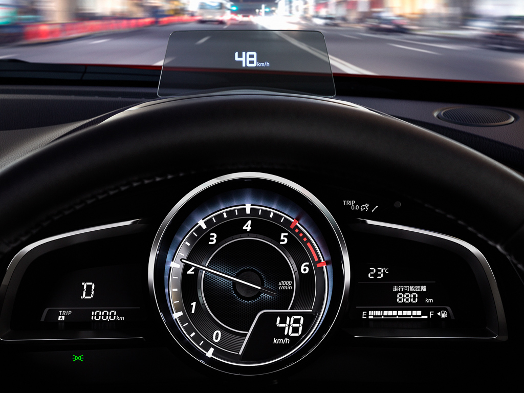 Pokud jste někdy auto s průhledovým displejem řídili, určitě víte, že se jedná o pomůcku velmi užitečnou a příjemnou. Pravda, jistý ‚wow efekt‘ nové hračky časem uvadá, leč funkčnost zůstává, a to také díky poměrně jednoduchému principu celého systému. Aby řidič nemusel pro čtení informací zbytečně přeostřovat, je zapotřebí zajistit iluzi obrazu vznášejícího se nad vozovkou před automobilem. Toho se dosahuje pomocí systému zrcadel a čoček umístěných v hlubinách přístrojové desky. Tam někde se také nachází samotný displej a zdroj světla. Dnes se obvykle jedná o TFT displeje se silným podsvícením, aby byla zajištěna dokonalá čitelnost i za slunečního svitu. Nemusíte se však bát, že by silný zdroj světla poškodil váš zrak, paprsky jsou promítány na sklo, případně malý plastikový štítek mezi volantem a čelním sklem.