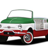 Jo a pokud vás náhodou Giulia neuchvátila, ale holdujete raději ekologičtější dopravě, má pro vás Hertz v nabídce stylový restomod Fiatu 500 Jolly Spiaggina v barvách italské trikolory a pohonem na baterie.