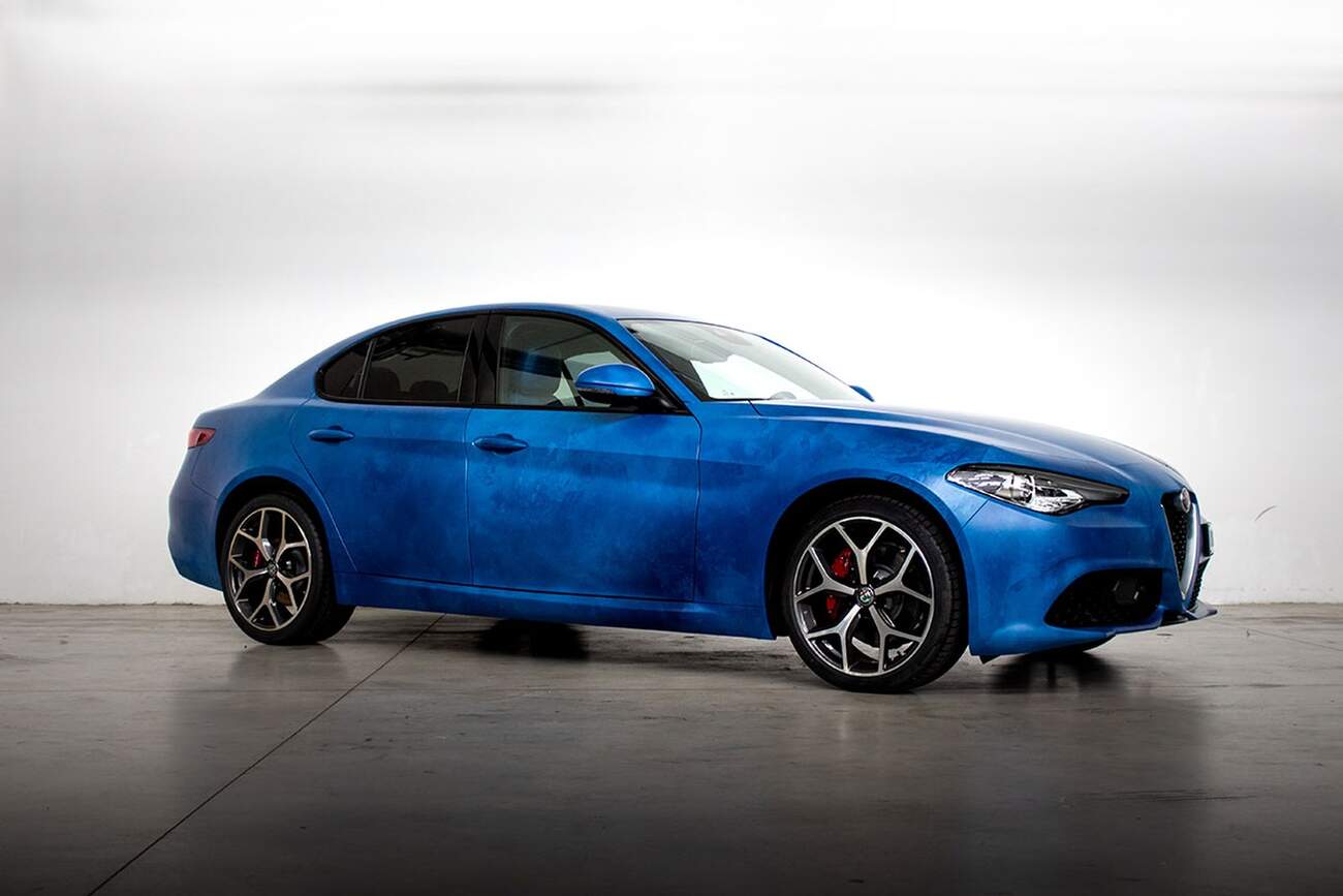 Celým jmínem ji říkají Alfa Romeo Giulia Veloce Grand Tour. Je to naftová varianta v plné výbavě s velmi specifickým lakem, jež připomíná drahý kámen Lapis lazuli (složenina lazuritu, kalcitu, sodalitu, pyritu, augitu a dalších příměsí) a jehož barvu se snažili do svých fresek často replikovat renesanční malíři.