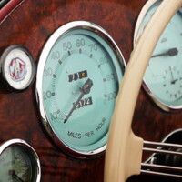 Na druhou stranu zatímco v současné době mluvíme jen o proměnlivě měkkých plastech a různých materiálových imitacích, tady se sedí v ušlechtilém interiéru. Palubní deska je opravdu deskou, a vyrobená je celá z jednoho kusu leštěného dřeva. Na ní jsou instalované mnohé budíky a několik přepínačů — všechny skleněné, chromové nebo dřevěné. Úchvatné, opravdu!