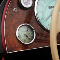 Tou první je viditelnost budíků. Když pominu i-Cockpit u Peugeotu, snad neznám moderní auto, kde bych neviděl na všechny přístroje. MG TD Midget má naproti tomu budíků pět, kompletně viditelný je ale jen jeden. Nicméně protože jsme ve sportovním voze, je to ten nejdůležitější, čili otáčkoměr. Všechny ostatní částečně zakrývá volant. Ukazuje-li vám ručička zrovna tam, kam nevidíte, vykloňte se.