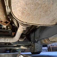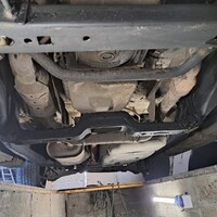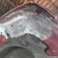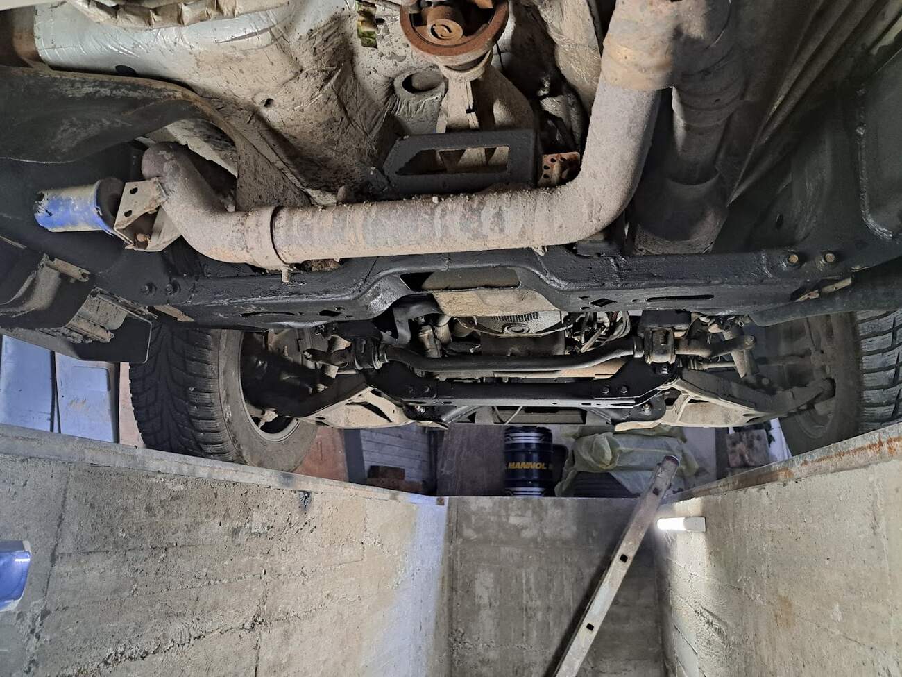 Po chuti mi nebyla ani povrchová koroze podvozkových částí a rámu. Odpoledne s aktivátorem koroze a dinitrolem přineslo kýžené ovoce a auto zespod už nevypadá jako vrak lodi na břehu Aralského moře. Při zevrubném čištění nosných částí jsem si mimo jiné všiml, že přední pravá čtvrtka rámu je vařená, což potvrzuje moji předchozí hypotézu o vážné nehodě. Sváry jsou ale provedené fakt hezky, neprorezají a vlastně jsou v lepším stavu, než ty tovární od Fordu. Myslím, že opravená bouračka není zas takový problém, rozhodně z toho mám lepší pocit, než kdyby se napojení rámu někdo snažil zarovnat a schovat třeba pod kytem.