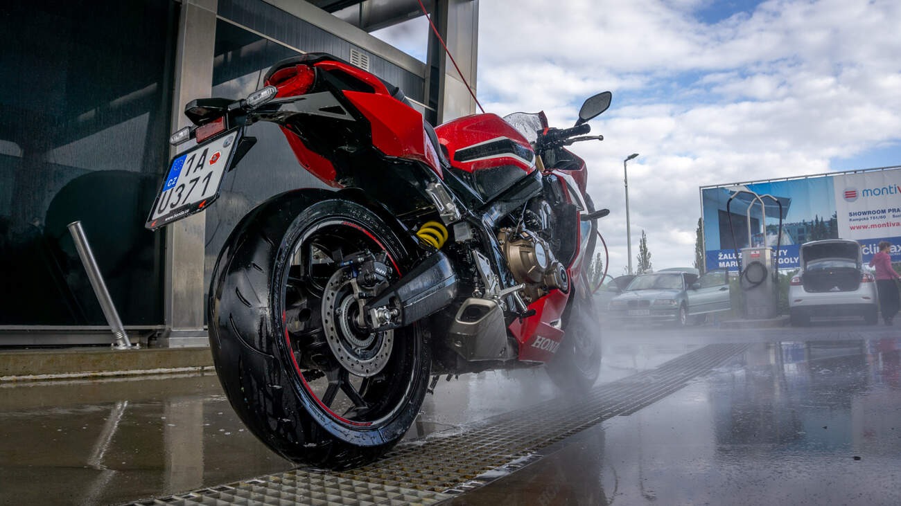 Motor je po novu trochu objemnější, jak už jsme si řekli na začátku, ale po staru má pořád čtyři válce v řadě. A to já moc rád nemám. Teda, ne že by s ním bylo něco špatně, spíš mám na mysli čtyřválce obecně. Ony si prostě v klidu vrčí a při normální jízdě nedělají žádné drama. Ty nejlepší výkony podávají až když začnou zpívat vysoko v otáčkách, což platí i zde. Teda ne, že by to v nižších otáčkách nejelo, ono to právě jede, a to je vlastně ten problém. Než se dostanu k tomu, co si chci poslechnout, tak už prostě strašně uháním a běžná okreska mi rychle přestane stačit. Dvojka v omezovači znamená 140km/h, takže čistě technicky už na dvojku můžu porušit všechny rychlostní limity v ČR, včetně dálničního. (Trojka je pak 180 a čtyřka 200, ověřeno za vás na německé dálnici, v Mexiku) Omezovač zde zasahuje až ve 12500ot a zní parádně. V Hondě si údajně dali záležet, aby jim krom splnění Eura 5 a hlukových limitů zůstal i zvuk, a to se povedlo na výbornou. Pan Machač při focení sice tvrdil, že nic neslyší, ale bodejť ne, však jsem jel krokem, aby to stihl namačkat. Pouštím mu ten soundtrack při vjezdu do tunelu, aby věděl, co jsem měl na mysli. Pak už jenom souhlasně přikyvoval. Od poslechu omezovače vás odrazuje pouze úzkostlivě blikající shift light.