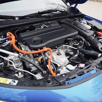 Zkratka eCVT je tu patrně jen jako takový vtípek, který vás má vylekat. Ne, nebojte se, žádné CVT tu není. Vlastně tu není vůbec žádná převodovka. Dvoulitr si dělá svoje zatímco auto pohání elektromotor, takže tu žádná převodovka není potřeba. Co ale na té dálnici, máme se bát víru v nádrži? Vůbec ne. To, že tu není převodovka, ještě neznamená, že spalovací motor nemůže kola pohánět přímo. Honda opatřila systém e:Hev elektronicky řízenou spojkou, která dokáže motor připojit ke kolům ‘natvrdo’. Dělá to jen ve vysokých rychlostech při ustálené jízdě, aby zlepšila efektivitu provozu. S trochou nadsázky by se dalo říci, že Honda Civic umí zařadit jen ‘šestku’, jiné převody ale nemá.