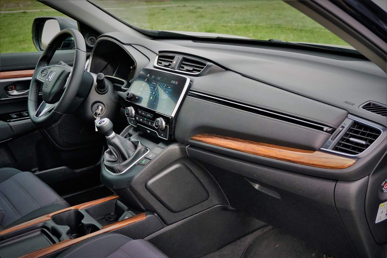 Dobrý interiér je alfou a omegu všech aut. Vaše auto může mít vnější vzhled řecké bohyně, či motor, který stvořil samotný ďábel, ale pokud se budete cítit v interiéru špatně, všechno ostatní je je okamžitě znehodnoceno. Co naplat, nejvíc času prostě člověk tráví na sedačce řidiče a Honda CR-V patří mezi ty vozy, u kterých se vnitřek prostě povedl. Po prvním nastoupení okamžitě poznáte, že hlavní trh je za mořem. Všude je spousta prostoru, držáků na pití, schránek a jiných místeček, kde snadno ztratíte svůj mobil. Zaujme taky záplava dřeva. Spousty dřeva. To už tedy v Evropě nebývá natolik obvyklé, nicméně po prvotním překvapení, jsem si vlastně docela rychle zvykl. Dokonce se mi nepodařilo zjistit, jestli je to skutečné dřevo, či nějaký nastrojený kus plastu. Na zkoušku šroubovákem jsem si tedy netroufl. (To si říkáš investigativní novinář?! – pozn. Adam) Pro někoho může být trochu zvláštní umístění řadící páky na středovou konzoli, ale pro daný typ vozu, je to vlastně ideální řešení. Zaprvé, máte díky tomu volný celý středový tunel, na který se vejde spousta odkládacích míst a za druhé máte ovládací prvky pěkně při ruce. Na stisknutí tlačítek rádia či klimatizace stačí jen natáhnout prsty z řadičky. Jednoduché a účelné.