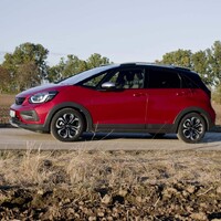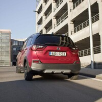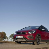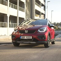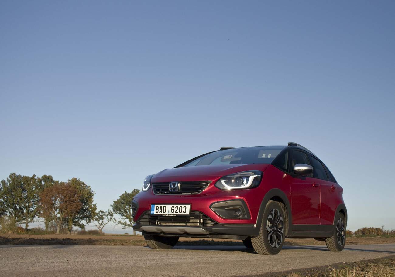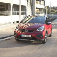 V aktuální čtvrté generaci se Jazz výrazně zaoblil a na rozdíl od svého předchůdce už nevypadá jako Honda Odyssey omylem vypraná na vyvářku. To je sice trochu škoda, pořád si ho ale s žádným jiným autem nespletete. Tento červený exemplář se honosí nejvyšší výbavou, která se tak trochu prezentuje jako samostatný model s názvem Jazz Crosstar. Od běžného Jazzu se liší hlavně o chloupek větší světlou výškou, outdoorovým oplastováním, ližinami na střeše a také mřížkou na přední masce. Právě poslední jmenovaná úprava mu dost pomáhá, neboť při pohledu na standardní Jazz prostě nemůžu dostat z hlavy podobnost s bezzubou lebkou novorozence, kterou jsem viděla v Národním muzeu (jen si to vygooglete, není zač).