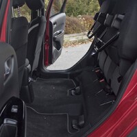 Když si sednete dovnitř, jako první vás napadne, že tak skvělý výhled ven se jen tak nevidí. Přední sedačky jsou umístěné poměrně vysoko, neboť je pod nimi schovaná nádrž, přední sloupek se smrsknul na polovinu a k tomu je kabina prosklená jako papamobil. Se vzdušnou atmosférou pomáhá i palubní deska, která je oproti předchůdci doslova vygruntovaná, navíc z ní nic netrčí směrem do zorného pole, jak je dnes dobrým zvykem u středových displejů i u přístrojové kapličky. Líbí se mi i měkké textilní čalounění na palubce (proč mít pohovku jen pod zadkem, když může být i před vámi?). A co je nejlepší, vzdušnost rozhodně není pouhou iluzí. V autě je opravdu dost místa pohodlně pro čtyři a nárazově pro pět.
