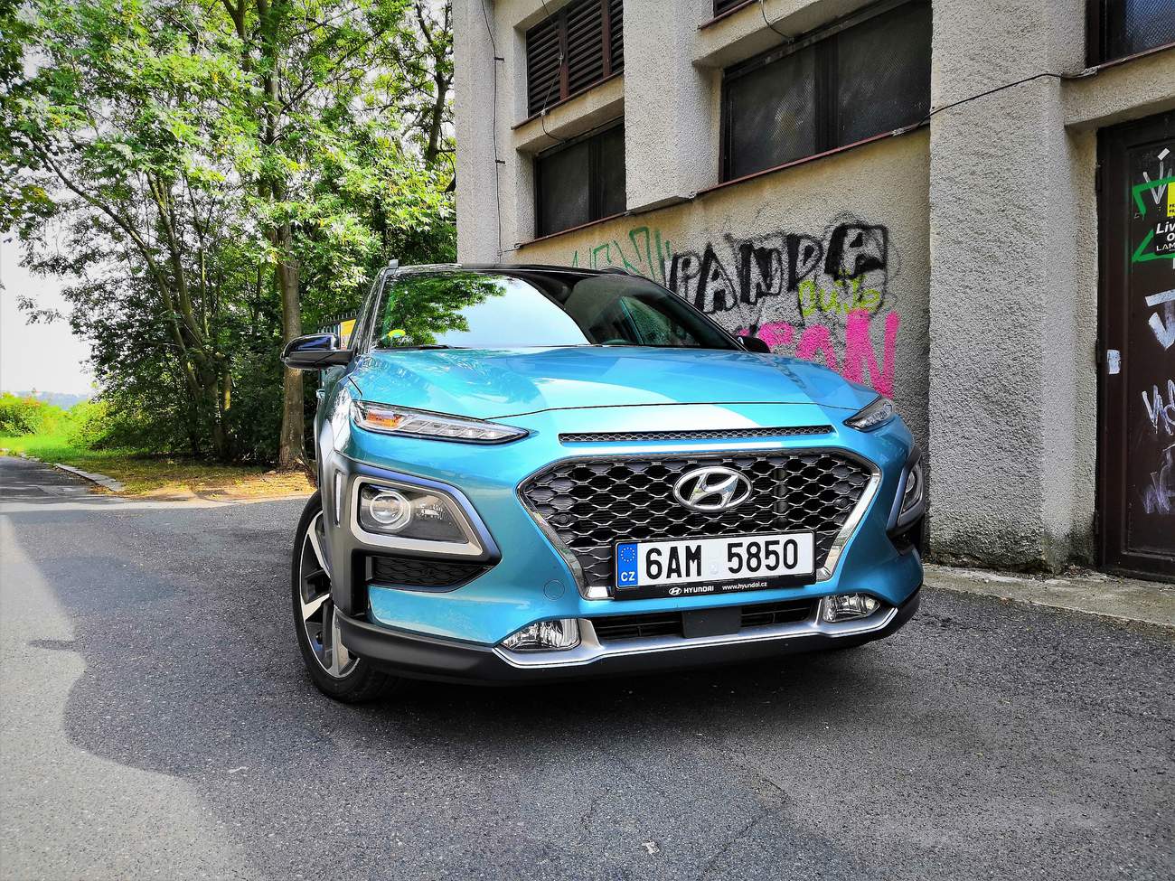 Před pár měsíci testoval Konu, dnes již bývalý kolega Krab, se základním tříválcem 1.0 T-GDI. Pamatuji si, že se mu to auto docela líbilo a chvíli uvažoval, jestli by to neměl koupit (všichni kdo znáte Kraba jistě víte, že on chce koupit každé auto, do kterého sedne). Jediné, co by prý vyměnil, by bylo pohonné ústrojí. Prý by tomu slušela ta přeplňovaná jednašestka se čtyřkolkou. Dneska si tento předpoklad vyzkoušíme na vlastní kůži, protože tohoto modráska pohání právě větší ze dvou spalovacích motorů, co jsou u nás v nabídce, o výkonu 177 koňských sil. Bude to stačit na svižnou jízdu? Tenhle motor si pamatuji ze svezení v Hyundai i30 Turbo a musím se přiznat, že tam mě onehdy příliš nepřesvědčil.