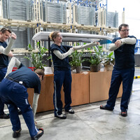 Konečně jsme vpuštěni do zasedací místnosti. V obřích kožených sedačkách se před námi vyvalovali všichni státní hodnostáři, kteří kdy do Nošovic vstoupili, a že jich bylo… Po motivační prezentaci přichází obligátní školení BOZP a fasování slušivých pracovních uniforem, ochranných brýlí a galoší s kovovou špičkou. Nejdeme totiž jenom okounět. Na několika stanovištích si na vlastní kůži vyzkoušíme, zač je toho smontovaný Hyundai.