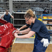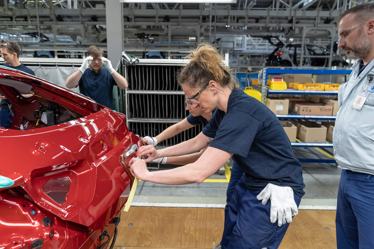 Montážní linka je podivuhodná věc. Představte si souvislý pás táhnoucí se ve dvou patrech halou. Na začátku je pár plechů, na konci vyjíždí hotové auto. Natlakovaná linka vypouští jedno auto každou minutu, výroba jednoho trvá od řezání plechů až po první nastartování asi 21 hodin. Teď jsme zhruba uprostřed, čeká nás montáž zámku dveří a nasazení dveřního obložení. Konečně mám v ruce seriózní nářadí, pokyn zní jednoduše – našroubovat šest šroubků, „stačí nasadit šroub, a ono si to dráhu najde samo.” Jo, to zrovna. Nejdřív musíte trefit správný úhel, a když to nejde, je třeba plechům pomoct hrubou silou. První šroub je nejhorší, zatvrzele se protáčí a já nabírám zpoždění. Proč ta zatracená linka sviští tak rychle? Aspoň že mezi námi děvčaty novináři nejsem sama, kdo každou chvíli hledá spojovací materiál po zemi. Nikdo mě nemůže obvinit, že šroubuju jako holka. Tohle stanoviště bych si teda nevybrala, lepení mi šlo mnohem líp. Už jsem říkala, že se to nedá stihnout?