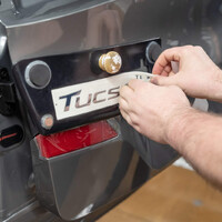 Magnetická šablona, která se přiloží na plech, přesně označuje místo lepení a nenechává moc prostoru pro chybu. Doufejme. Musí se jen pořádně zatlačit, aby se chytlo lepidlo. Ještě logo doprostřed, a mám hotovo. Pokud máte doma Fastbacka polepeného nakřivo, z celého srdce se omlouvám. Vydala jsem ze sebe to nejlepší.