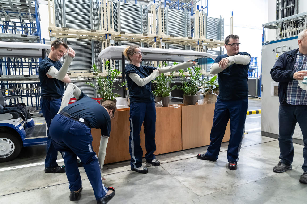 Když konečně předám šroubovák dalšímu z kolegů, uvažuju, jestli je možné pracovat jednom stanovišti od rána do večera a nezbláznit se. Od naší průvodkyně Aleny Hudcové se ale dozvídám, že na jednom stanovišti samozřejmě nikdo nezůstává celý den. Operátoři se střídají po každé pauze, takže vždy po dvou hodinách. Někdy se jedná jen o změnu strany – třeba právě tady na dveřní lince – někdy o přechod na úplně jiné stanoviště. Každý dělník je zaučen na vícero pozic ve svém úseku. Pokud se tu někdo přece jen zblázní, zřejmě se ho povede vbrzku úspěšně zaléčit, neboť fluktuace pracovníků na dělnických pozicích je prý ve srovnání s administrativou minimální.