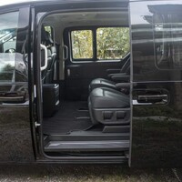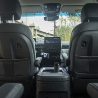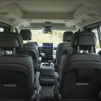 Posaďte se dovnitř a ocitnete se v prostorném luxusním salonku, o jehož vzdušnost se stará zejména bohaté prosklení kolem dokola i zeshora. Menší střešní okno prosvětluje pracoviště řidiče, větší pak celý zadní prostor. Zadní okna by si možná zasloužila nějaké to zatmavení, neboť takhle je dovnitř vidět jako do akvária. Cestující si však na příliš slunce stěžovat nemusejí, všechna okna jsou totiž vybavena síťovými roletkami. Pro výbavu Luxury je typická konfigurace 2+2+3, přičemž první dvě řady jsou tvořeny rozmařilými křesly s elektrickým nastavováním. Sedačky v druhé řadě – opatřené i podnožkami – se dají polohovat jako lazy boy skoro do lehu, nechybí jim výhřev ani ventilace a dají se posunovat jak podélně, tak i příčně. Všichni cestující vzadu mají k dispozici vlastní USB přípojku a samozřejmě držák na pití, zadní část má samostatně nastavitelnou klimatizaci s početnými výdechy. Komfort cestování je ve druhé řadě suverénně nejvyšší, což potvrdily i mé ratolesti, které se ani jednou nepohádaly o sedačku spolujezdce. Možná jen nějaký stoleček by se k velkopanským křeslům hodil.