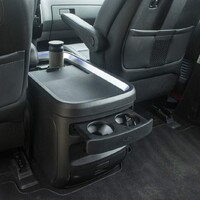 Pomalu si můžeme sednout za volant, ale ještě chvilku zůstaneme u hejblat a komfortních funkcí. Řidič i spolujezdec mají k dispozici mraky úložných prostor. Skoro mám pocit, že až moc, protože budu pořád něco hledat a potrvá věky, než projdu všechny možnosti – tři kapsy ve dveřích, dvě klapačky a cupholder nahoře na palubce, přihrádka na mobil uprostřed, ještě jeden vysunovací cupholder, obří šachta ve středovém boxu a ještě dva cupholdery. V tomhle autě můžete mít opravdu hodně pití! Skříňka mezi předními sedačkami slouží i jako rozlehlá police a vytkla bych jí snad jen jednu věc – že vypadá jako lednice, a přitom nechladí. Na stropě (mimochodem potaženém heboučkým plyšem, za který by se nemusela stydět žádná prémiovka) najdete ještě ovládání střešního okna a posuvných dveří.