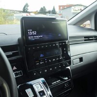 Přístrojovou desku známe už z jiných modelů Hyundai a patří mezi mé oblíbené. Budíky jsou pohledné i přehledné, ovládání na volantu intuitivní a promítání obrazu z kamery při blikání efektní. Uprostřed máme velký panel s displejem a tlačítky, i když pouze elektronickými. Za mne by masa nemusela být vyrobena z ultralesklého plastu, který se hned zapatlá, ale co už. Ventilace má každopádně své dedikované ovládání, kvůli němuž není třeba nikde bloudit, to samé hlavní funkce jako navigace, multimedia nebo hlasitost. Tlačítko s hvězdičkou si můžete osadit funkcí dle svého výběru a já jsem si na něj dala kameru na zadní sedačky. To je taková milá drobnost, díky níž se nemusíte otáčet, když se vzadu děje něco nezvyklého. Navíc si současně s ní můžete aktivovat interkom a budete pak promlouvat k pasažérům hezky zblízka – přímo z repráčku u hlavové opěrky. Promlouvat samozřejmě mohou i oni k vám, jen nemají možnost interkom sami aktivovat, nebo se mi alespoň nepovedlo zjistit jak. Zní mi ale celkem logicky, že na řidiče by nikdo bez varování z repráků hulákat neměl.