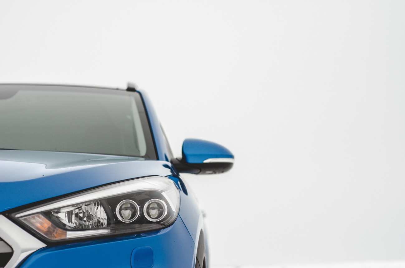 Ano, nový Tucson se nebojím označit za hezký vůz. Ty tam jsou zvláštní proporce ix35, nový model vypadá sice mohutně, ale velmi svěže a kladný dojem jenom podtrhuje modrá metalíza Ara Blue. Modrou barvu mám velice rád, to se o mně všeobecně ví. O to větší zklamání pro mě představovalo všudypřítomné modré podsvícení ovládacích prvků v kabině. Ještě že alepsoň přístrojový štít jde s dobou a je podsvícen bíle.