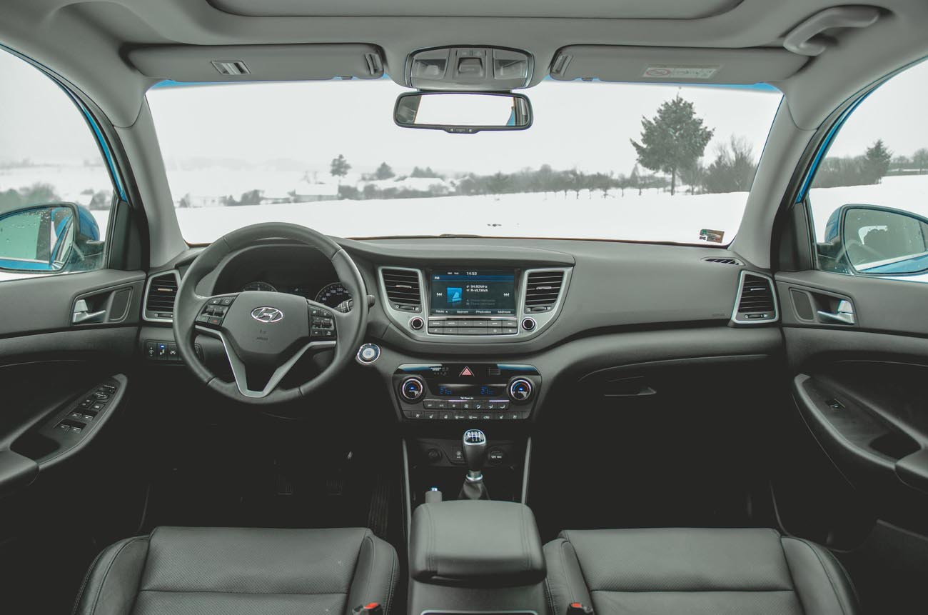 Kabina Tucsonu je stejně docela zvláštní místo. Na první pohled působí trošku nudně, bez jakýchkoli designových výstředností, navíc bohatá směs použitých materiálů různých textur a kvalit, viditelná při bližším průzkumu, asi nepotěší rozmazlené ruce ohmatávačů plastů. Když se ale usadíte, zjistíte, že Tucson je nejen plný luxusní výbavy, ale ovládací prvky jsou přehledně rozmístěné, ovládají se pomocí velkých tlačítek a prakticky nic tu nechybí.