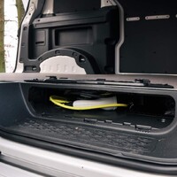 Na velké kusy nábytku ale ID.Buzz ideálním stěhovákem není. Délka ložné plochy sice činí 2,2 metru, jenže to počítá s využitím průlezu pod sedačku spolujezdce a tam zasunete leda dlouhé tyče – třeba žebřík už je moc široký. Reálná využitelná ložná plocha pro větší věci tak nedosahuje ani 1,8 metru, naměřil jsem spíše ke 170 centimetrům. Navíc je nákladová hrana poměrně vysoko nejen díky bateriím, ale i úložnému prostoru pod podlahou – tam se sice skrývá skvělá schránka na kabely a další harampádí, většina uživatelů by však nejspíše ocenila nižší schod.