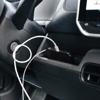 Velmi mě potěšila i odkládací zdířka na mobil, je hned po ruce pod volantem. Kromě toho u ní najdeme i hlavní nabíjecí konektory USB-C, kterých je po celé kabině dostatek - napočítal jsem celkem pět včetně jednoho na dveřích spolujezdce. Nabíjet všechna zařízení naráz tak při pracovním nasazení není žádný problém.