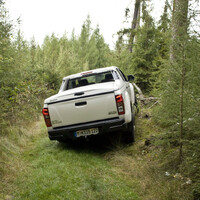 Konečně se dostáváme k vrcholné disciplíně D-Maxu, tvrdé práci v divočině. Většina civilních ‚much‘ se hned po sjezdu ze zpevněné cesty promění v přednosti. Nenechte se zmást perleťovými odlesky, tohle není žádná sralbotka převlečená za teréňák, vlastně spíš naopak. Primární zadní náhon se přepíná na 4x4 pomocí otočného voliče vedle řadicí páky (a to i během jízdy rychlostí až 100 km v hodině), další otočení kolečkem aktivuje redukci. Nájezdové úhly 30 a 24° patří k nejlepším hodnotám, jaké na trhu pickupů najdete, stejně tak úhel bočního náklonu 49°.