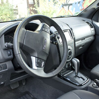 Testovaný kousek – double cab Premium – představuje nejcivilnější a také nejluxusnější verzi, jakou si zákazník může dopřát. Prostor pro posádku se v ničem neliší od standardního osobáku. Jsou tu velmi pohodlná kožená sedadla (žádná Valcona, přátelé, ale festovní a dobře omyvatená kůže) s výhřevem, automatická klimatizace, kožený multifunkční volant a hromada úložných přihrádek. Snad jen infotainment s navigací má ještě co dohánět, pokud chce srovnat krok s konkurencí. Dotykový displej se občas nechá k reakci vysloveně přemlouvat a probojovat se k některým položkám menu mě stálo dost trpělivosti. Alespoň propojení s telefonem fungovalo bez problémů, to hodnotím velmi kladně.