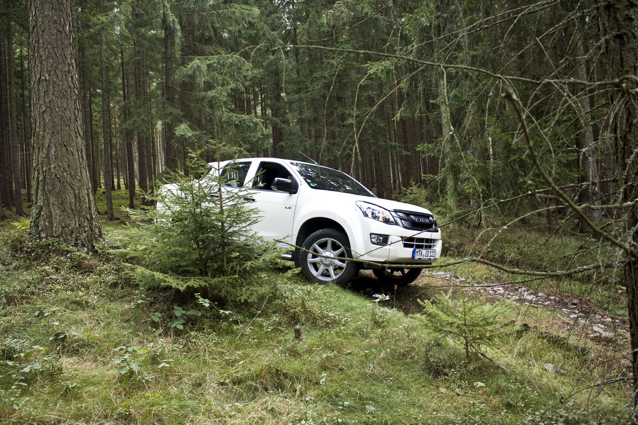 Otestovat terénní schopnosti auta je vždycky trochu ošemetná záležitost. Člověk pochopitelně nechce mlátit prázdnou slámu a povídat o něčem, co pořádně nevyzkoušel. Na druhou stranu je terén o dost hůř čitelný než silnice a špatný odhad velikosti balvanu nebo hloubky výmolu může snadno skončit nepříjemnostmi při vracení. Většinou si tedy kromě přehledných polí a luk troufnu jen do míst, kde přede mnou už prokazatelně ‚něco‘ projelo. Jistě, mohl to být traktor, jehož průchodnost terénem je někde trochu jinde, ale to už se holt ukáže. S D-Maxem jsme se vydali na krátkou návštěvu bývalého vojenského prostoru v brdských lesích a na průzkum močálů – toho času bohužel značně vyschlých – u soutoku Vltavy a Sázavy. S klidným svědomím mohu prohlásit, že kudy vedlo něco jen vzdáleně podobného cestě, tudy perleťový koráb proplul bez ztráty kytičky. Použít redukci většinou nebylo nutné a naložení hrstky balvanů se na jízdě neprojevilo ani v nejmenším. Naftový čtyřválec opatřený dvěma turby poskytuje vždy dostatek výkonu, tudíž mu odpustíte, že akustickým projevem po nastartování trochu připomíná zmíněný traktor. Pětistupňová automatická převodovka může na první pohled působit archaicky a na dálnici by se nějaký ten stupeň navíc jistě hodil, rychlosti jsou však dobře poskládané, řazení je logické a neobtěžující. Při průjezdu terénem, kdy si veškerou pozornost vyžádá sledování okolí a veškerý cit v nohou a rukou práce s plynem a volantem, by mě o manuálu vůbec nenapadlo uvažovat.