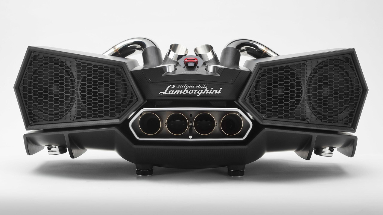 To, na co právě koukáte, není zadek z nabouraného Lamborghini, ale samostatný audiosystém iXOOST Esavox. Nejnovější produkt italské společnosti, která využívá právě výfukové systémy lokálních supersportů coby nedílnou část svých „hrajících soch“.
