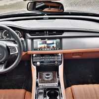 Škoda jen, že interiér nevzbuzuje stejně pozitivní dojmy jako vnější vzhled. Auto jsem si vyzvedával potmě a už na první pohled bylo patrně, že tady má Jaguar ještě co dohánět. Pokud jste zvyklí na kvalitu Mercedesu, preciznost BMW, nebo technologickou dokonalost Audi, tady budete zklamáni. Už samotná architektura interiéru je zvláštní. Palubní deska je poměrně krátká a je lemována pásem, vinoucím se těsně pod hranou čelního skla. Vytváří jakýsi kaskádovitý efekt a působí poněkud nadbytečně. Další bolístkou Jaguaru je dílenské zpracování. Stačí letmý pohled a vidíte, že tohle není úplně prémiové řešení. Spáry mezi jednotlivými panely palubní desce jsou zbytečně velké, v přechodech na sebe nenavazují a rozhodně z toho nemáte dojem, že sedíte v autě za dva miliony. Vůbec největší osypky jsem měl z barevné kombinace. Hnědooranžová kůže sice na první dobrou vypadá zajímavě, ale detaily to zabíjejí. Stač pootočit zrak na dveře. Na sotva metru čtverečním máte kombinaci matného černého plastu, oranžové kůže a plastu, hliníkového dekoru a dřevěného panelu v tmavě hnědé. Je to přeplácané, nevkusné a v luxusním kombíku vyšší střední to nemá co dělat. Po funkční stránce ovšem není moc co vytýkat. Jasně, infotainment není tak sofistikovaný jako u německých konkurentů, ale zároveň se nejedná o žádnou tragédii a žít se s tím dá vcelku dobře. Pochvalu si naopak zaslouží digitální přístrojový štít na místě klasických budíků. Má skvělou grafiku, široké možnosti nastavení a je opravdu přehledný. I tak ovšem pro mě zůstává interiér zklamáním.
