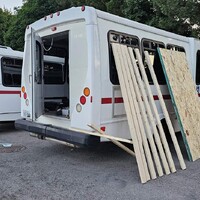 Rovnou prozradím, že měch se koupit nepodařilo. Termín dodání byl jeden týden. Byl pátek. V servisu, kde nám poskytli veškeré potřebné nářadí, elektřinu, vodu a velmi nechutné toalety, zavírali ve čtyři. Po tomto čase nám zůstal kabel pod dveřmi servisu a „trochu“ nářadí. Nic víc. Museli jsme rozebrat celý vnitřek autobusu, vytahat sedačky, chirurgicky vypreparovat hydraulickou rampu se zachováním druhých dveří a postavit novou postel. Výhodou bylo, že jsme už přesně věděli, co potřebujeme za hranoly, prkna, desky, šrouby, úhlové spojky, kabely, zásuvky, … (pan Kos, který houpal pana Lorence ve filmu „Na samotě u lesa“, by zcela jistě pokračoval dál).