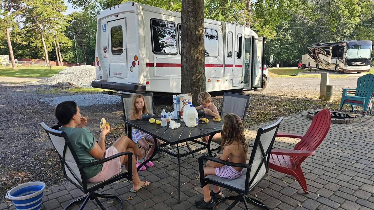 Jak jsem poznamenal, naše životně důležitá zastávka byl Camping World v Roanoke, VA. Měli v něm jeden kus 12V lednice skladem a k tomu se mi ještě podařilo vyhádat slevu 20 %. Fotky z kempingového světa najedete v galerii. Když jsme si při čekání na expedici lednice ze skladu procházeli gigantické návěsy karavanů se třemi ložnicemi, plnohodnotným obývacím pokojem a velkou koupelnou s vířivkou, tak nám naše vytoužená velká lednice začala připadat trapná a autobus zavšivený a smradlavý. Ale to už tak bývá, když se koukáte někam, kam nemáte.