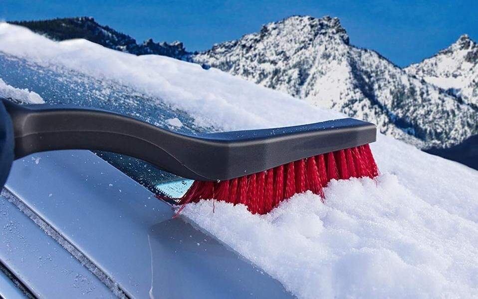 V zimě vám přijde vhod škrabka na led či rozmrazovač oken ve spreji. Nezapomeňte ani na smetáček na sníh. V opravdu velkých mrazech není od věci přibalit do kufru startovací kabely.