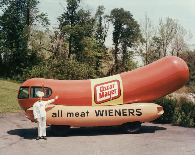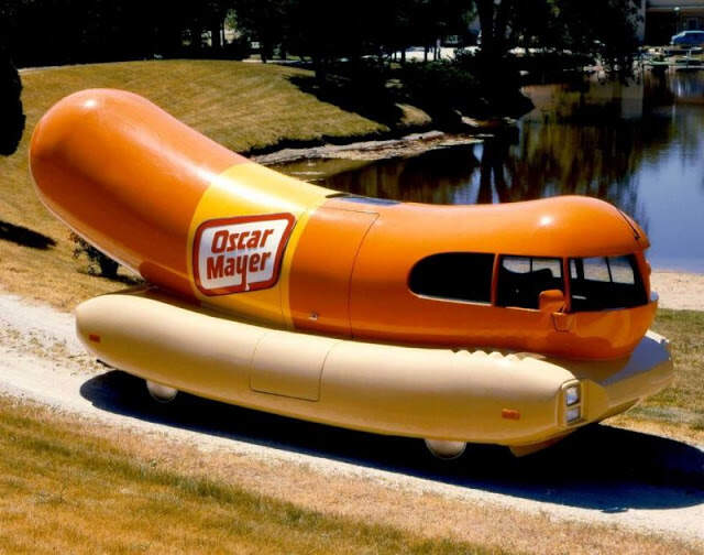 V USA byla ale situace jinačí a různé pojízdné poutače se tu těšily a do jisté míry dodnes těší celkem velké oblíbenosti. Pokud bychom ale měli jmenovat jeden takový vůz, který tuto nevšední kategorii vystihuje nejlépe, bude to jednoznačně Wienermobile Oscara Mayera. Z názvu víceméně jasně vyplývá, o co se jedná. Je to zkrátka automobil ve tvaru vídeňského párečku.