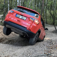 Jenže je to Jeep. Takže jedem do Milovic. Už když jsem naháněl správce offroad dráhy a řekl mu, že jsem přijel Compassem, jeho reakce "Čím???" ukázala, jak se asi pravověrní na tuhle snaživou krabičku budou tvářit. Ale po ujištění, že "my tě kdyžtak vytáhnem, zavolej" a předání obolusu za vjezd jsem vyrazil. A rovnou na úvodním sjezdu jsem si ověřil, že křížit se nebude. Automobil se naklonil, popojel, zahryznul, zafuněl, brzdy kvíkly a začali jsme se houpat. Poté, co mne s vyděšeným pohledem urychleně opustili spolucestující jsem to shopsal dolů a zvenku uslyšel "tyvole ještě jednou, to je maras, ty si magor!". Potěšilo mne to. Není nic lepšího, než když vás ve 38 letech někdo nazve děckem a bláznem. Takže ještě jednou. Jeep si sice kousnul lízátkem, ale částečně po dvou kolech zase sjel až dolů a tvářil se u toho dost netečně. Takže jsme vyrazili vstříc "dobrodružství", což je taková nepravidelná díra v zemi širší než auto, která vyžaduje plného muže a kýbl štěstí, aby se nic nepodělalo. Jeepu jsem přepnul zázračné offroadové kolečko na "Sand", protože mód "mírná panika" se zde nenachází a jal se dobrodružnit. Spolucestující vytáhli mobily a za pokřikování "a jeje" pozorovali, jak se kolečka nedotýkají země a strojek je přibržďuje, aby se dostal dál. Jako nebyl jsem si tak jistý, jako v Patriotu, ale nezapadli jsme, takže… Takže holt půjdem do lesa na výjezdy!