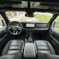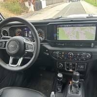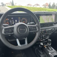 Zatímco vnější vzhled můžete u tohoto typu vozu ponechávat stále stejný, uvnitř musíte moderní prvky akcentovat více. Jeep to však udělal tím nejjednodušším možným způsobem. Přidal větší displej, na který se lépe kouká a je přehlednější (pomáhá i vcelku jednoduché uživatelské prostředí a překvapivě dobré rozlišení). A zároveň vás nijak nenutí jej aktivně využívat, klidně ho můžete mít vypnutý a ovládat vše postaru. Potřebujete připojit pohon všech kol, nebo zařadit redukci? Jasně, od toho máte tu menší páku. Chcete zapnout vyhřívání sedaček, volantu, změnit teplotu uvnitř, či přidat hlasitost audia? Na vše máte samostatné tlačítko nebo kolečko. Jednoduché a přehledné. A klidně to můžete ovládat i v lyžařských rukavicích, když na to přijde. Není potřeba dotykových plošek, touchpadů, hlasového ovládání, či otravného patlání po displeji v šestém řádku osmého podmenu vlevo dole. Dokonce i ta ruční brzda je skutečně ruční (vím, že se má říkat parkovací, ale nechte mě žít). Zapomeňte na různobarevné ambientní osvětlení, místo toho tady máte pořádná madla, která přijdou vhod posádce, až to rozbalíte někde v džungli. Tohle je prostě stroj dle staré školy, který vás však neochudí o nejpotřebnější komfortní prvky. Jen nenabídne zbytečnosti.