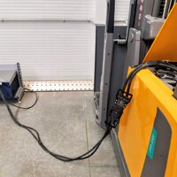 No a jak to vlastně teda celé funguje? EKS 412 je samozřejmě elektrický stroj. Pohání ho stejnosměrný elektromotor o výkonu 6 kW napájený soustavou olověných trakčních baterií, které váží 929 kg. To ale zdaleka není nejtěžší prvek zařízení – tím jsou tu vyvažovací závaží. Celé vozidlo pak váží 3838 kg, čili na něj na pozemní komunikaci (a ano, teoreticky ho lze pořídit ve verzi s většími kolečky a SPZ, je pak otypován jako samohybný pracovní stroj) nestačí normální řidičák na osobní auto. Nosnost vozíku je 1200 kg, avšak se stoupající výškou a způsobem naložení klesá až ke třetině hodnoty. Baterie se nabíjejí uživatelsky připojením konektoru k nabíječce od výrobce. Standard Menekkes nebo Chademo byste tu hledali marně, je to specifická koncovka.