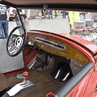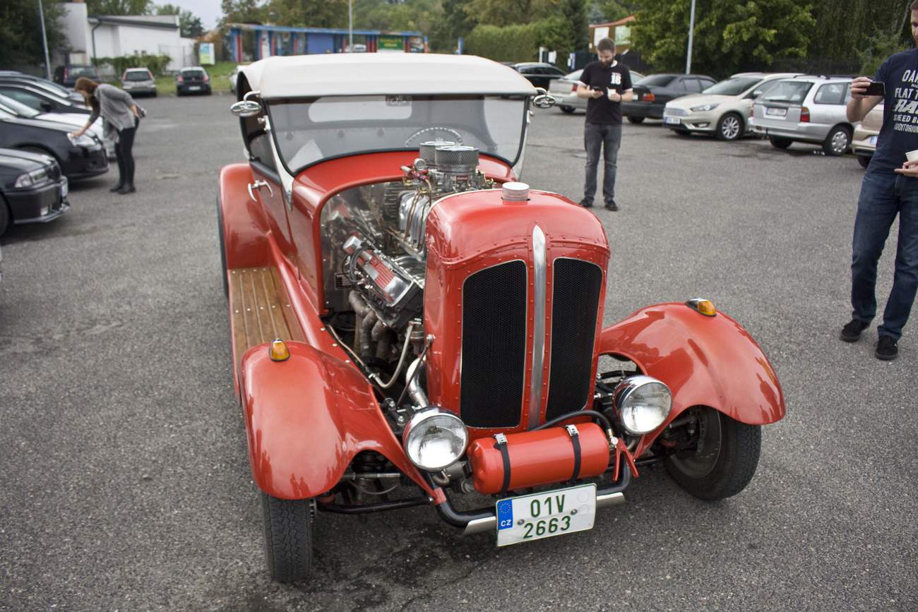 Odpoledne ubíhalo v družných rozhovorech u kávy, postupně se objevovaly další roztodivné kreace. Ať už lowrider Lada, Nissan Micra s Bōsōzoku výfukem, nebo punkově vyzdobený trojkový Golf, který nedávno absolvoval lowcostový závod Gumballkan. O příslovečnou “třešničku na dortu” se postaral nádherně šílený hot rod, který nám za hutného zvuku osmiválce ukázal, jak se pálí pneumatiky.