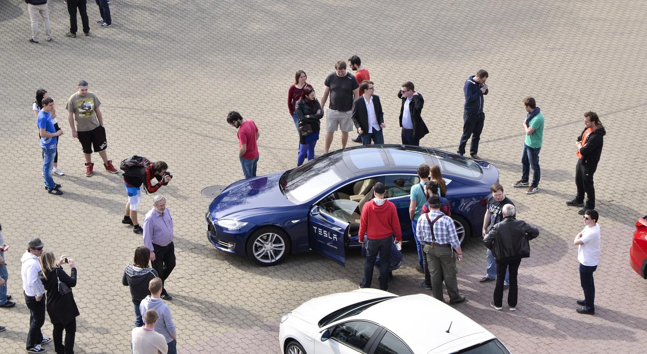 Po našem příjezdu se prostor před stadionem začal velice rychle plnit, až jsem nestíhal vnímat, co právě přijelo, kolik toho bylo a jakou to mělo barvu. Počet aut jsem přestal sledovat u čísla osmdesát. Z toho čtrnáct kusů byly MX-5. Zdá se, že mé nejapné kecy na adresu zimujících padly na úrodnou půdu. Vzhledem k velkému počtu aut jsem si vlastně ani nedokázal prohlédnout všechna, a tak bude můj výčet toho, co mě zaujalo, docela krátký. Černá Honda S2000 mezi Homosmečkou (nebo spíš Homostádem?), bílý žigulík, Tesla! Tesla byla vlastně největší atrakcí, dokonce ukradla většinu slávy červené MX-5 ND, se kterou nás její majitel navštívil hned poté, co se mu dostala do rukou. Auta přijížděla a odjížděla a tvrdé jádro kecálistů zůstalo až asi do šesti, kdy jsme naznali, že už máme vážně hlad, takže je čas jet domů.